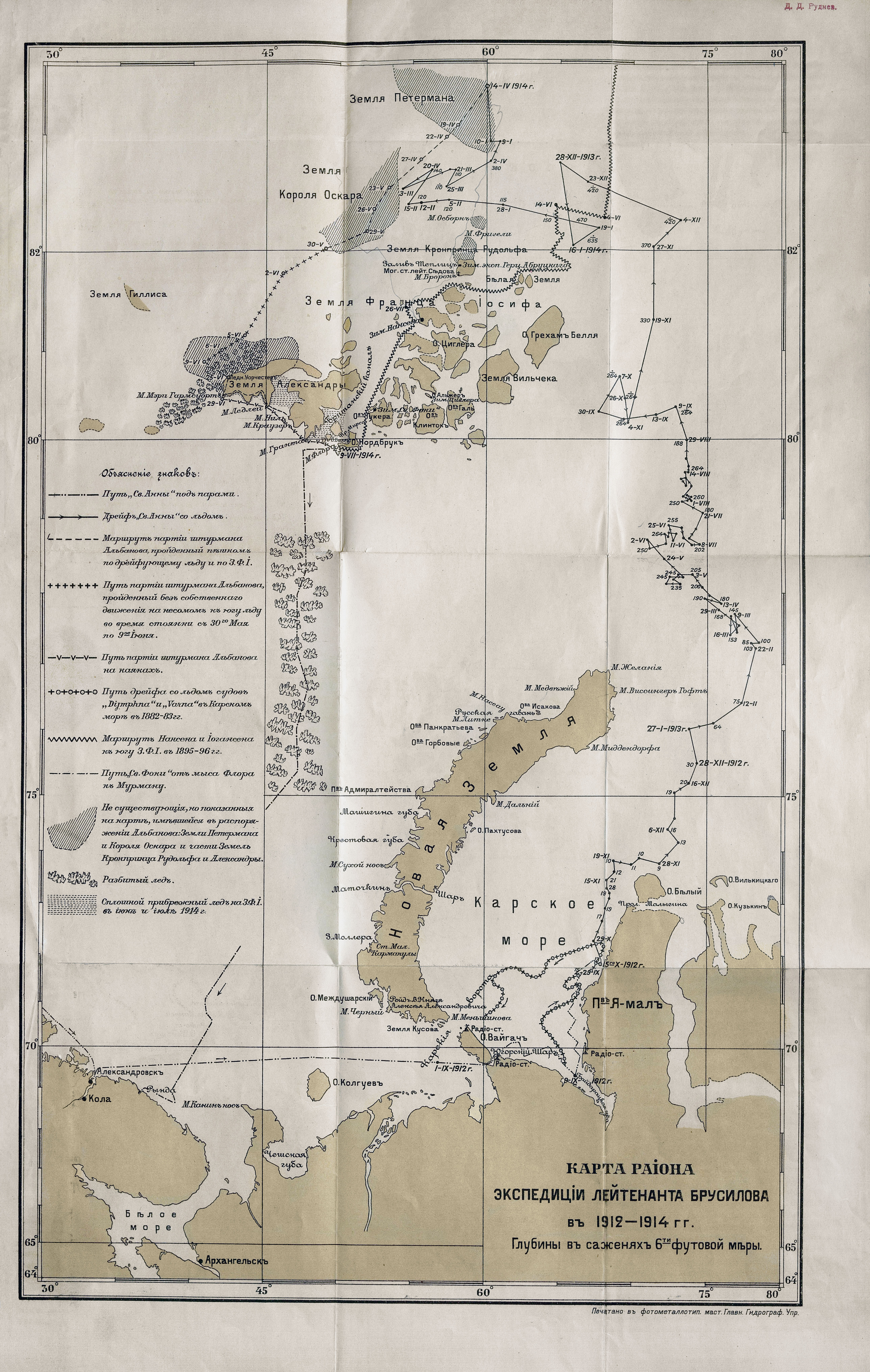Map of the route of Lieutenant Brusilov expedition 1912-1914