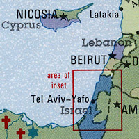 Map of Israel and Palestine from the 1988 World Atlas