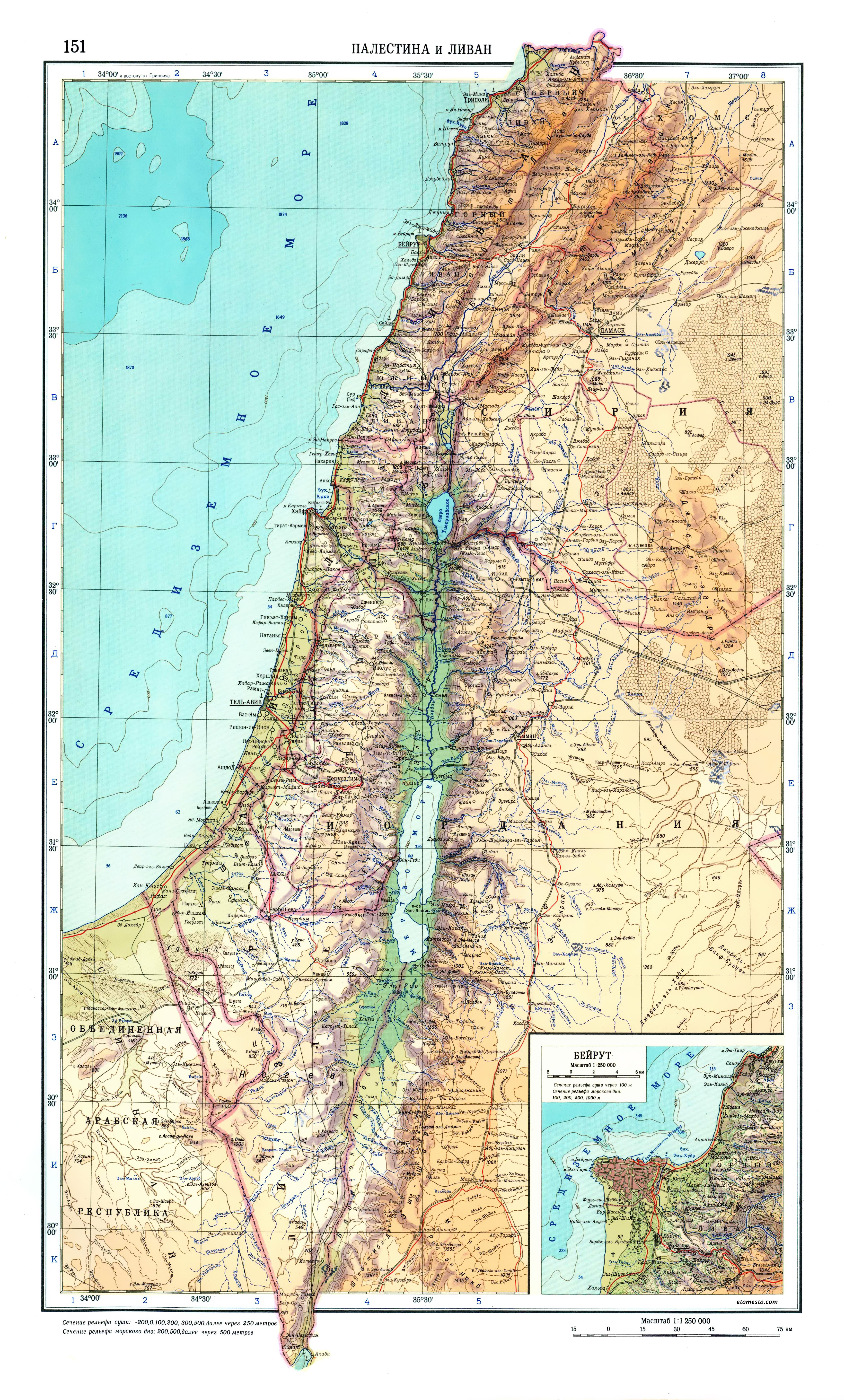 Map of Palestine and Israel from the 1967 Soviet World Atlas