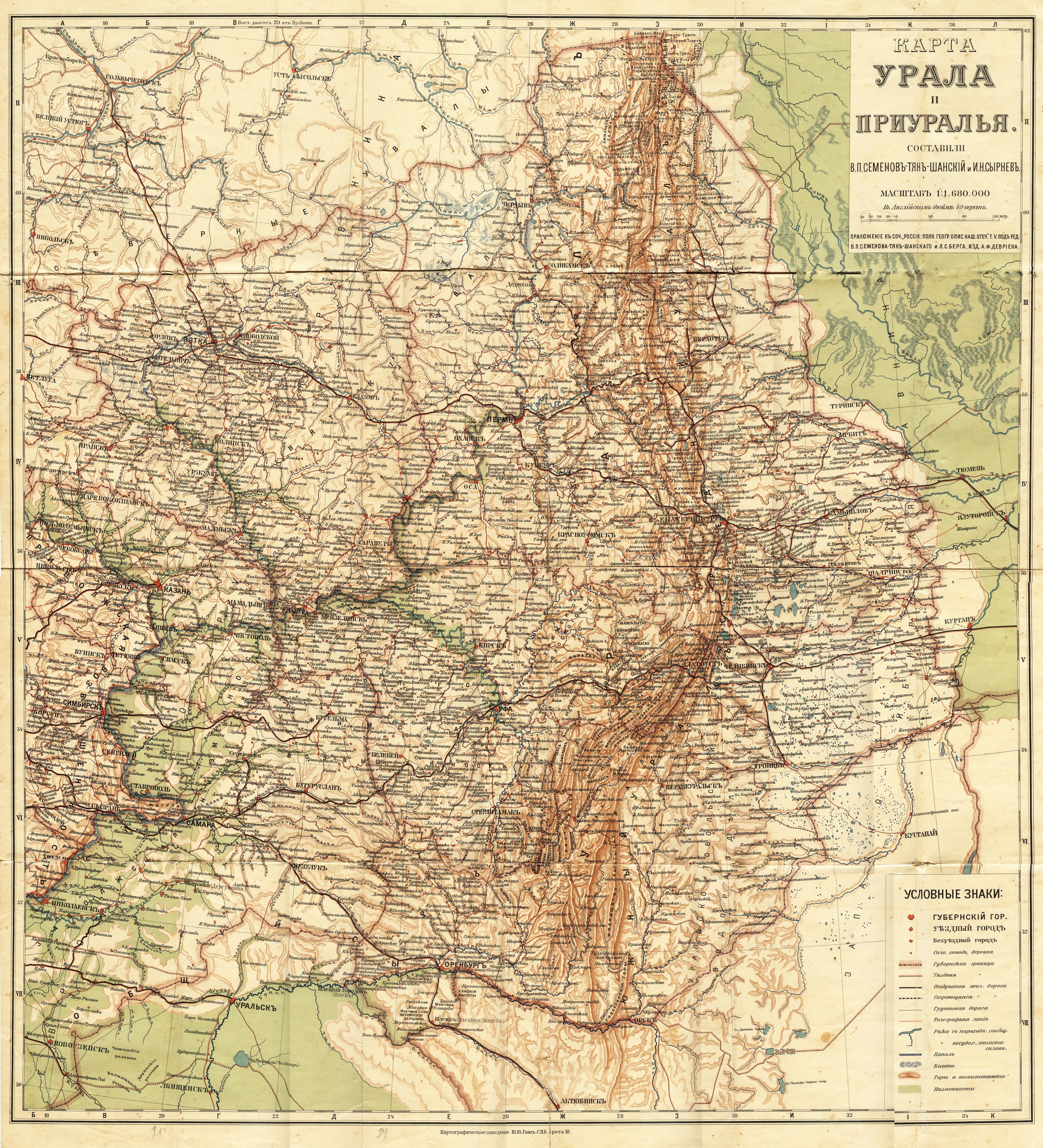 Map of the Urals and Urals 1913