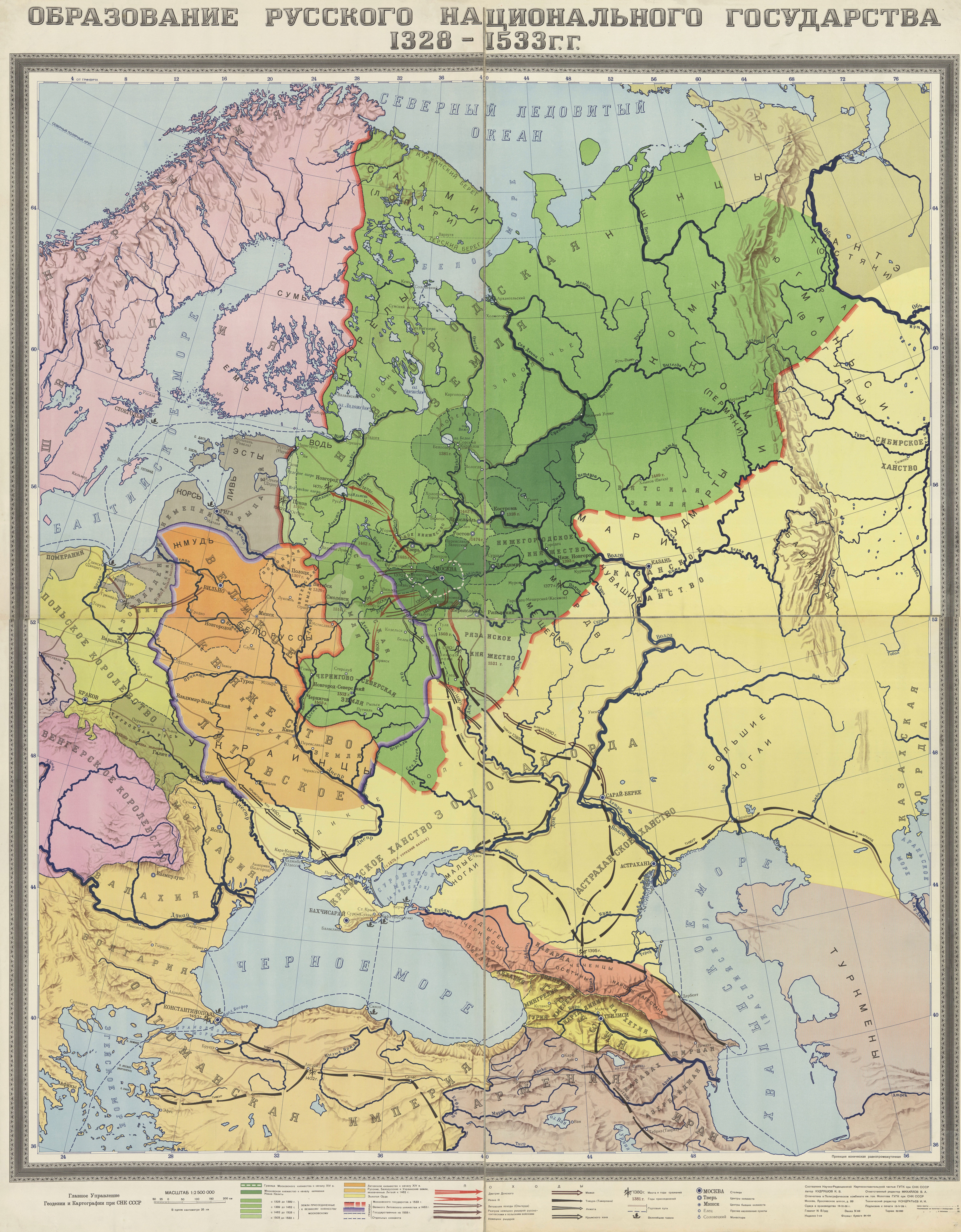 Map of the Moscow Principality from 1328 to 1533