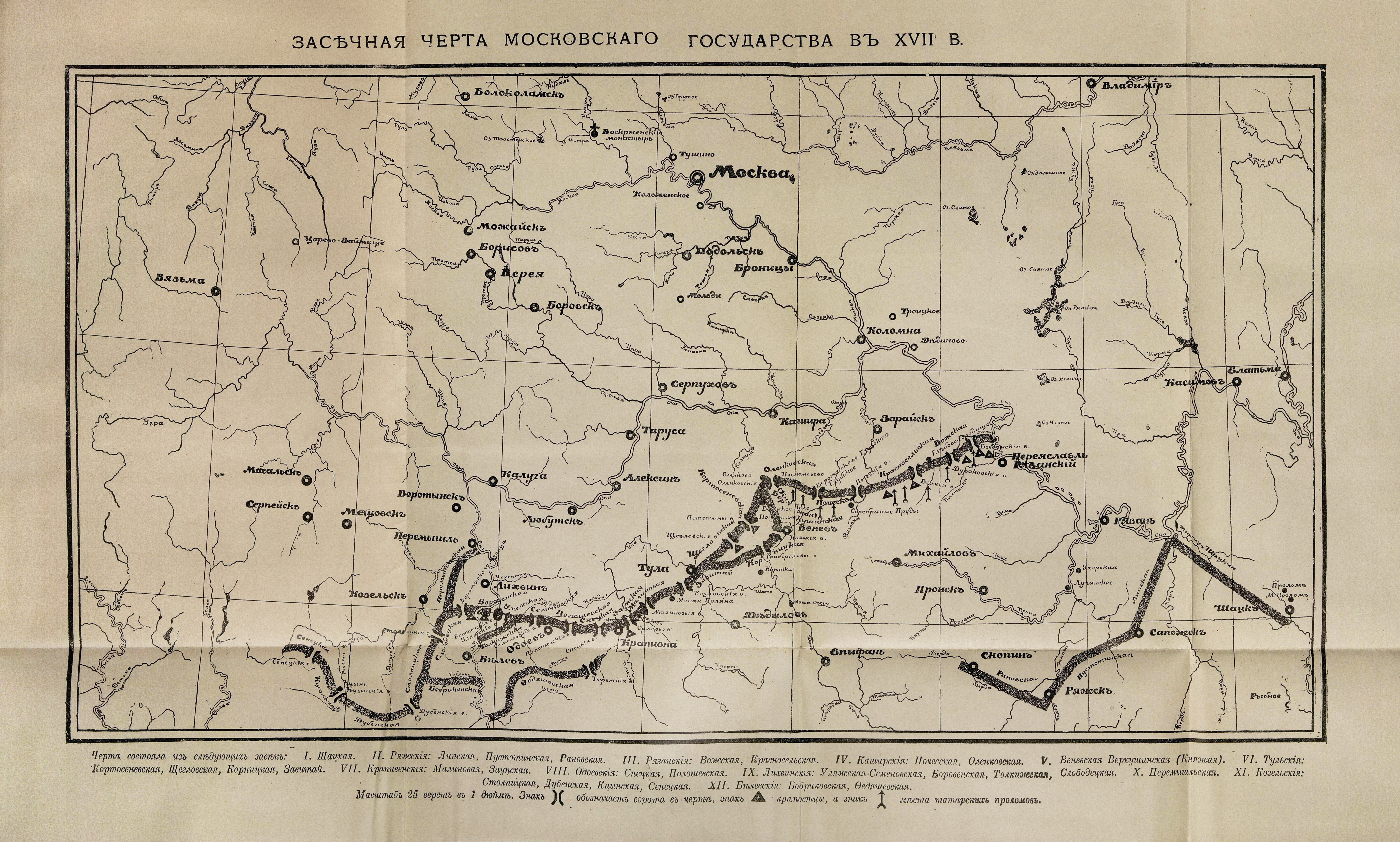 Map of the Zasechnaya Cherta of the Muscovite State in the 17th century