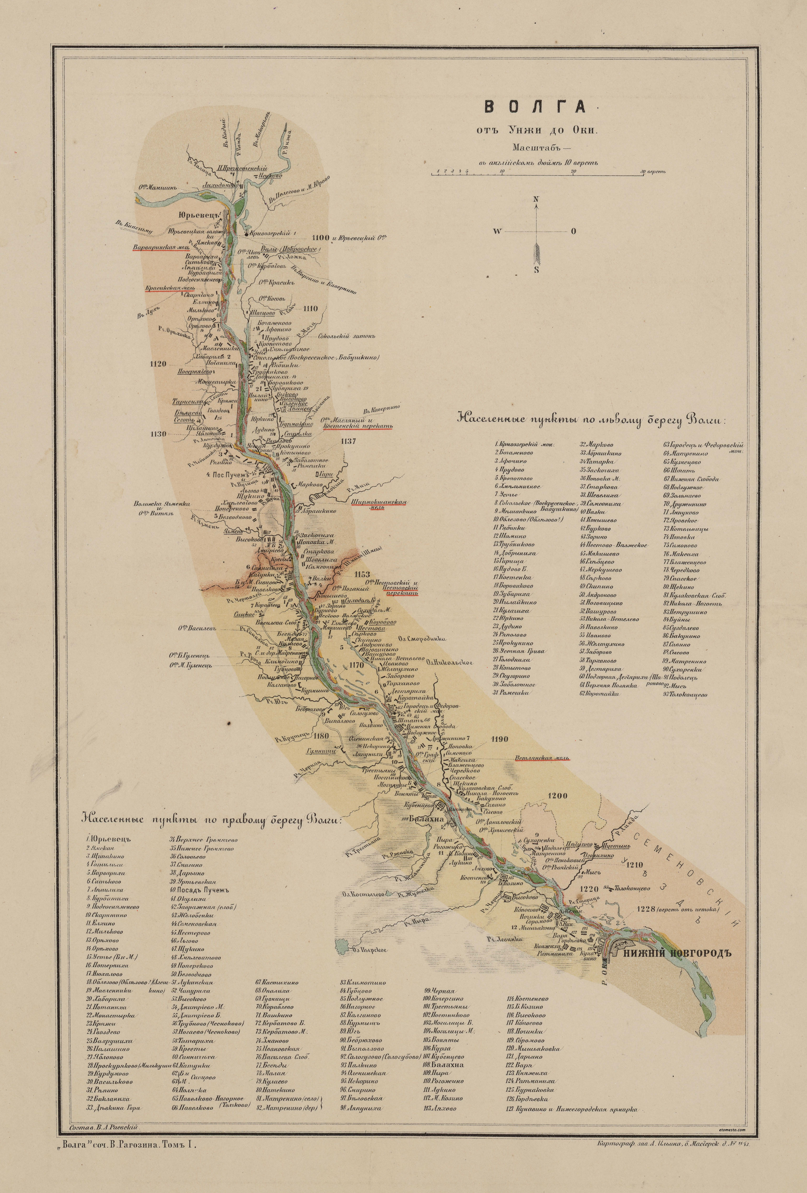 Map of the Volga from Unzha to Oka from Ragozin atlas
