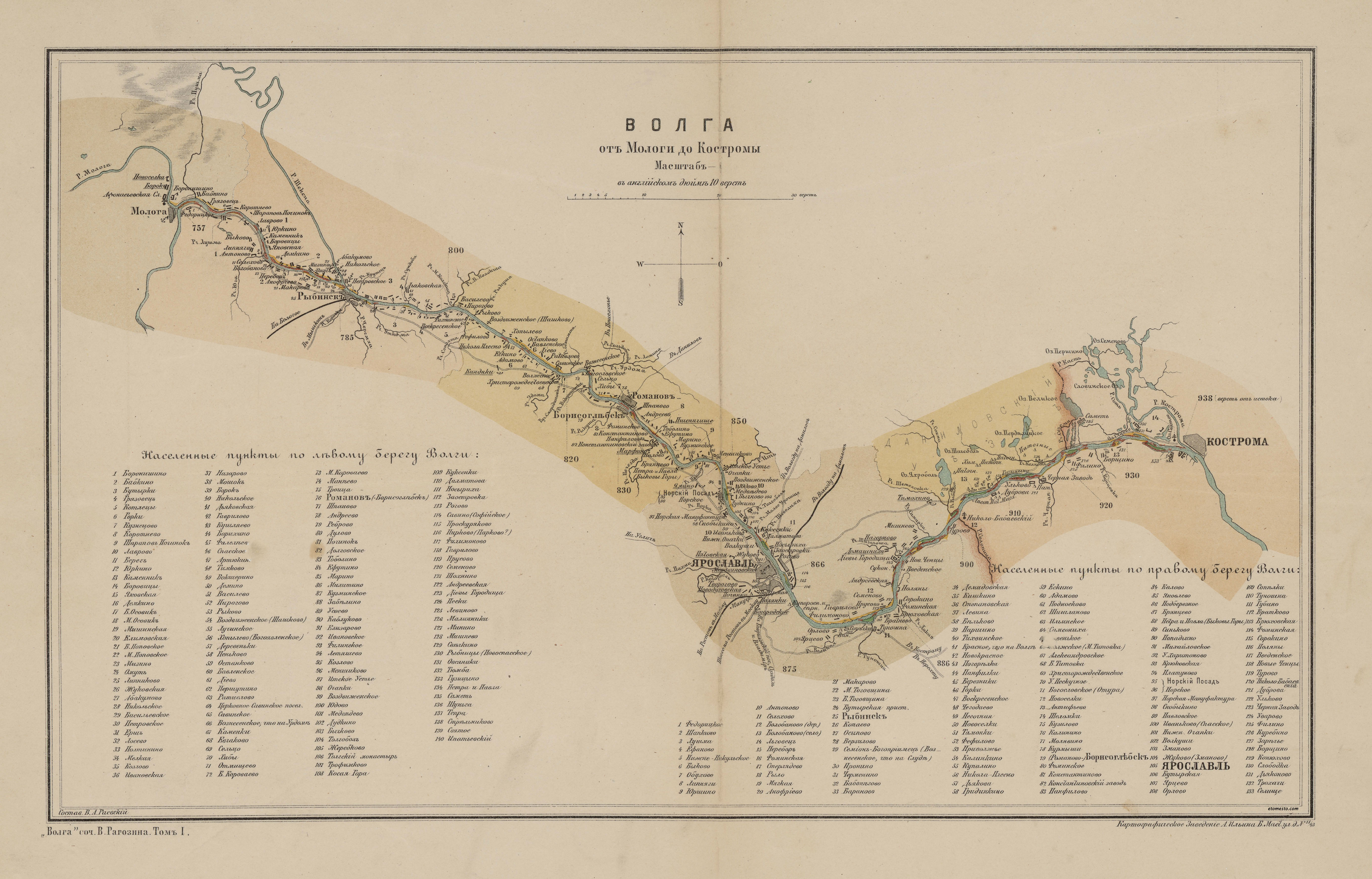 Map of the Volga from Mologa to Kostroma from Ragozin atlas