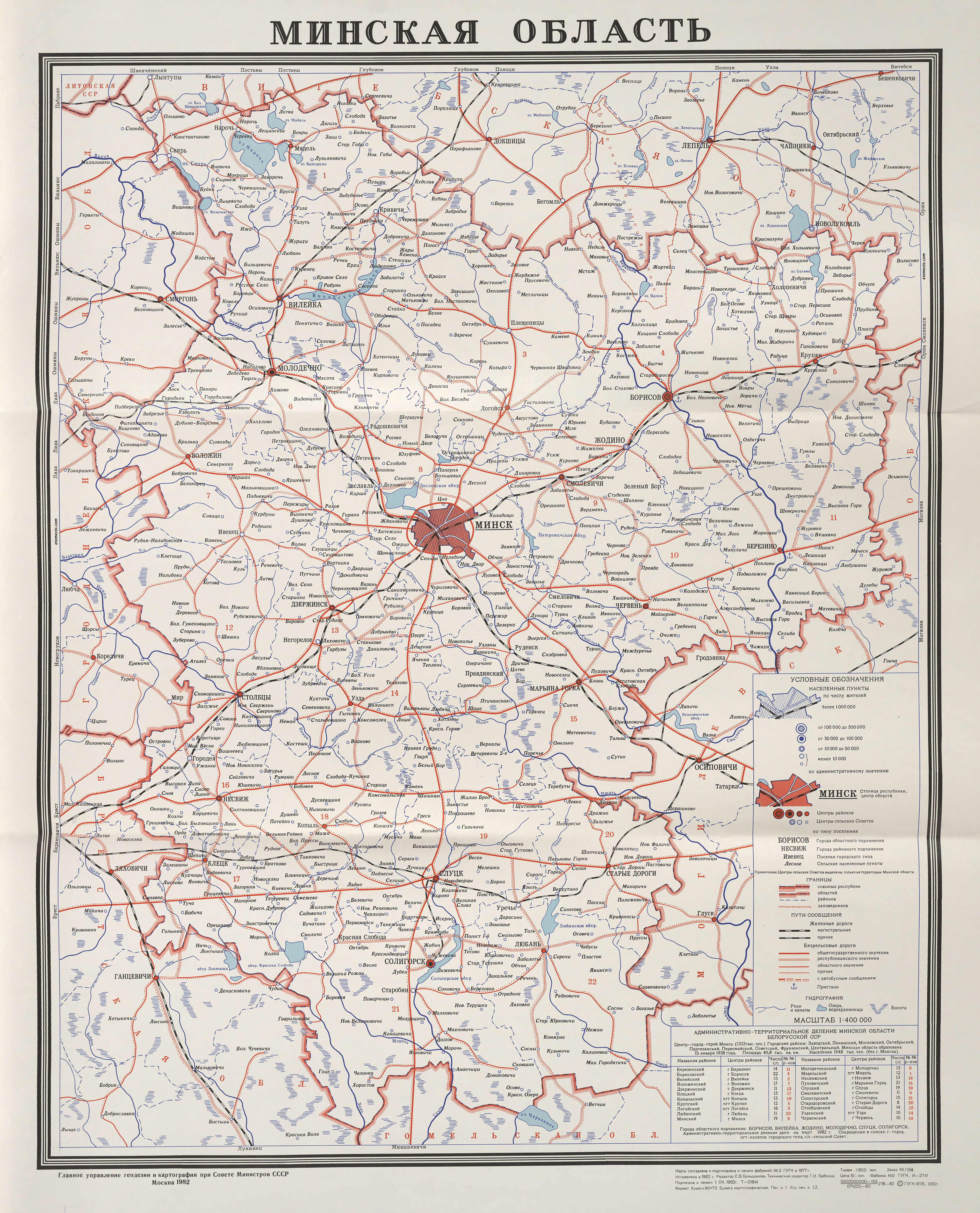 Administrative map of the Minsk region in 1982