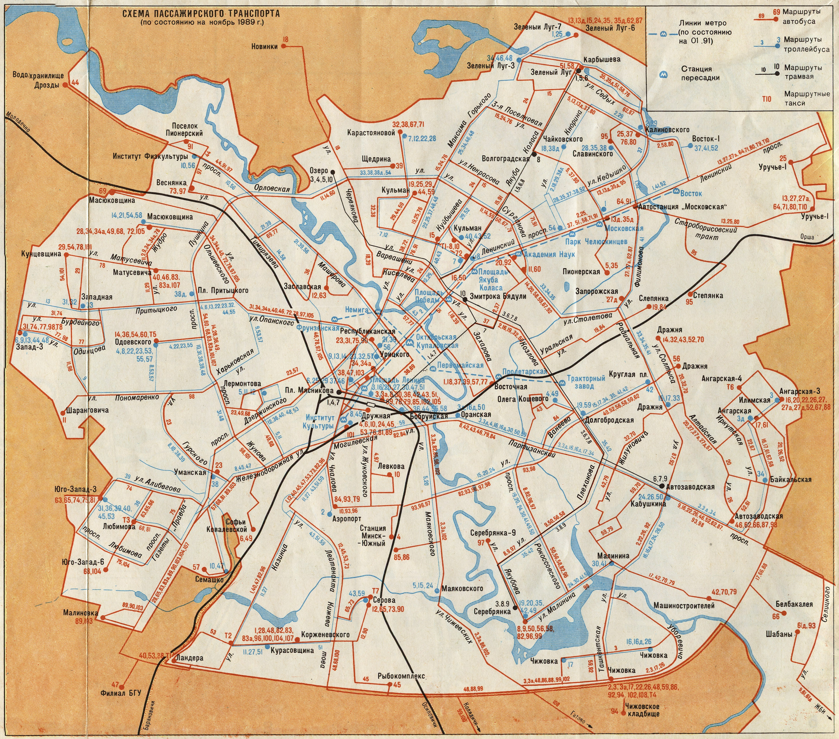 Scheme of passenger transport in Minsk 1989 - 1991