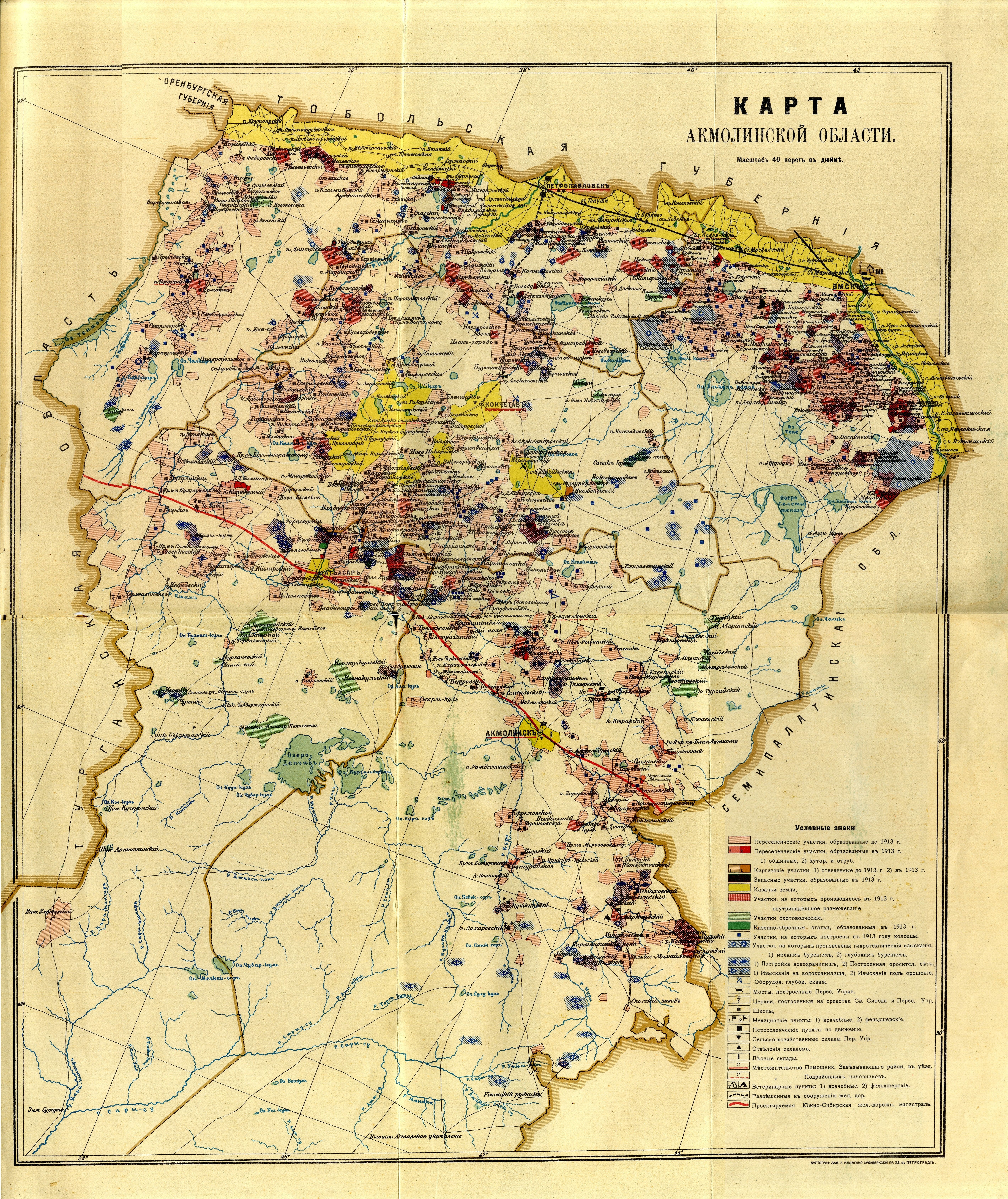 Map of the Akmolinsk region of 1914 by Yakovenko publisher