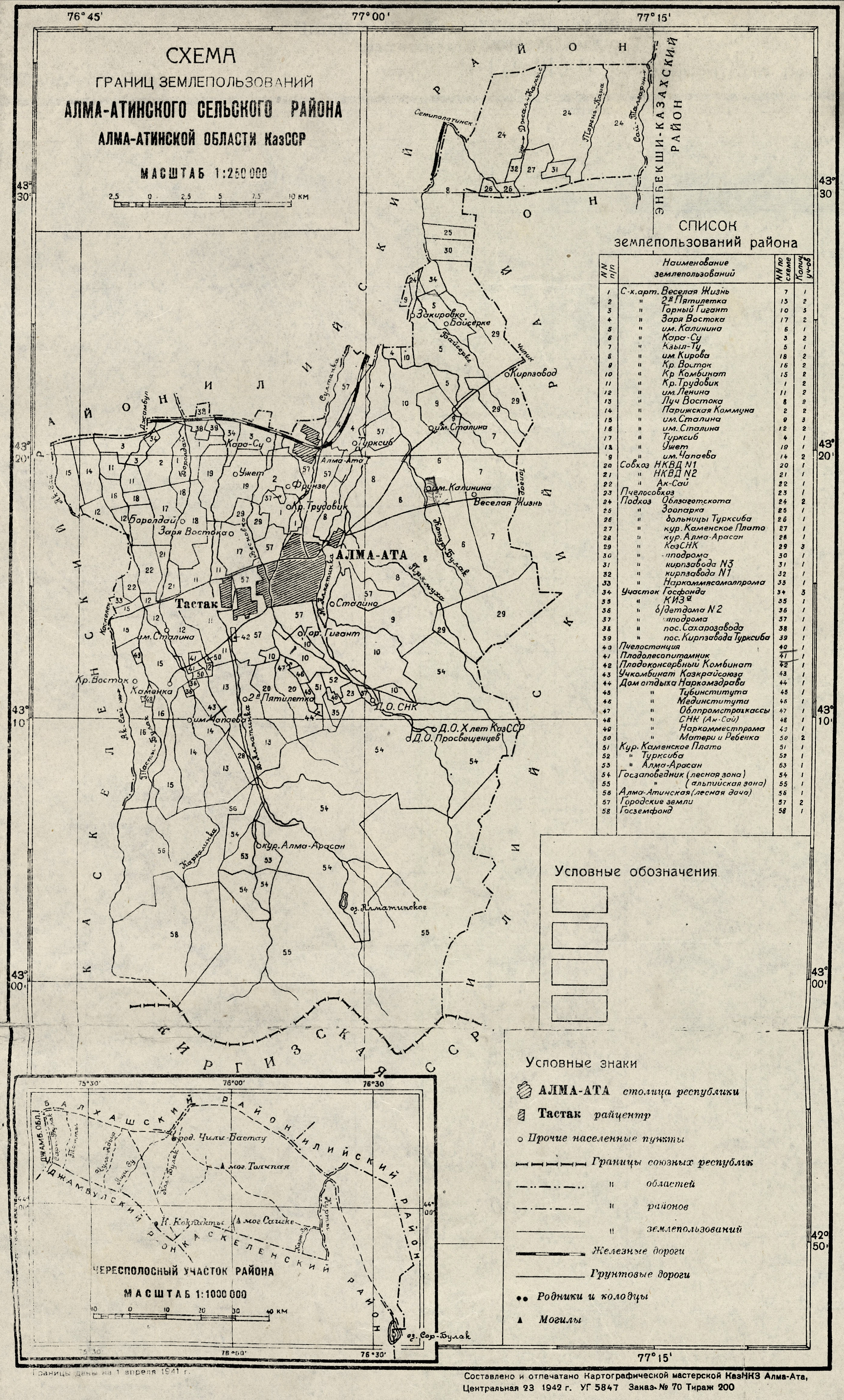 Land use boundaries diagram of the Alma-Ata region in 1941