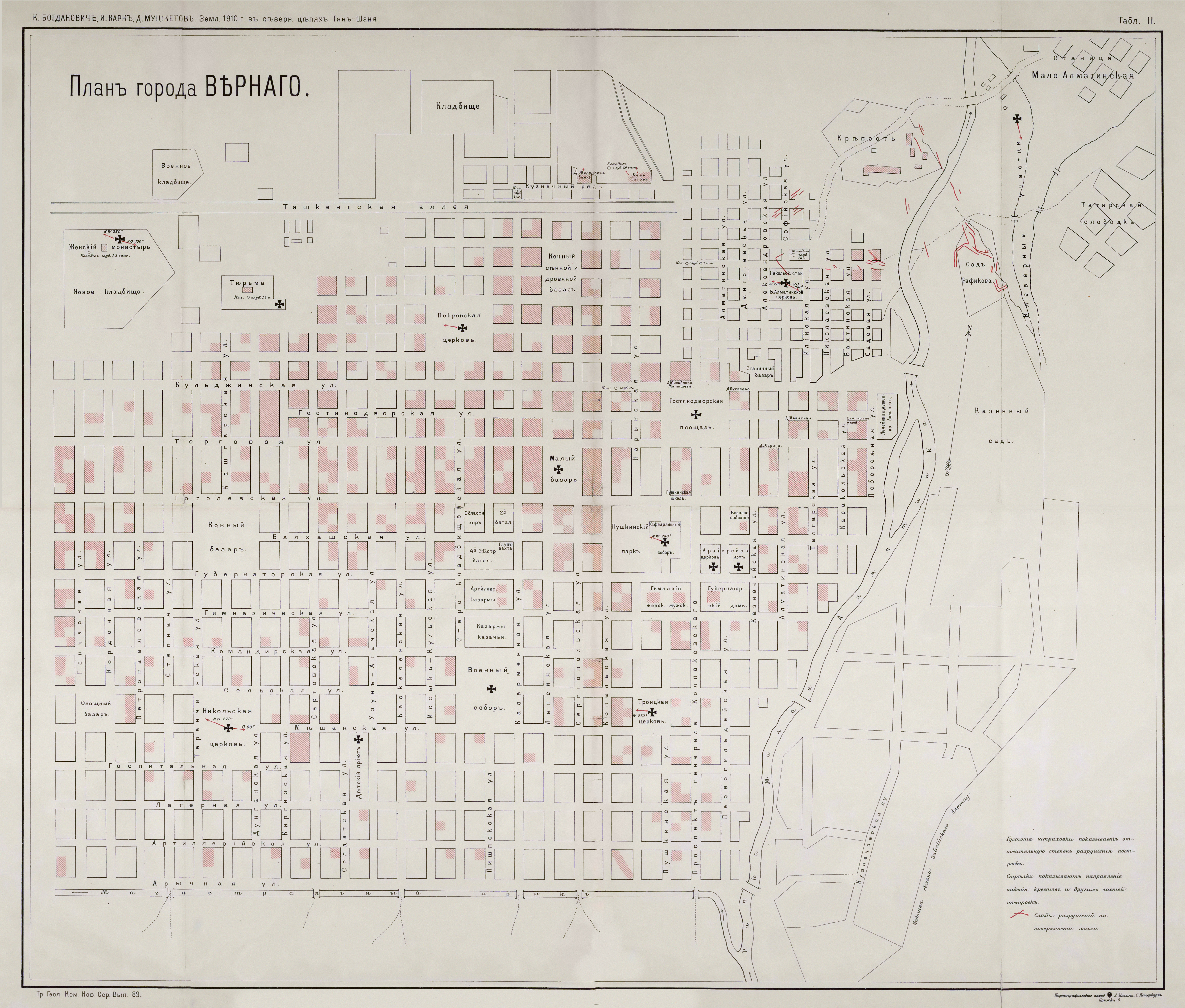 Plan of the city of Verny (Almaty) in 1910 after the earthquake