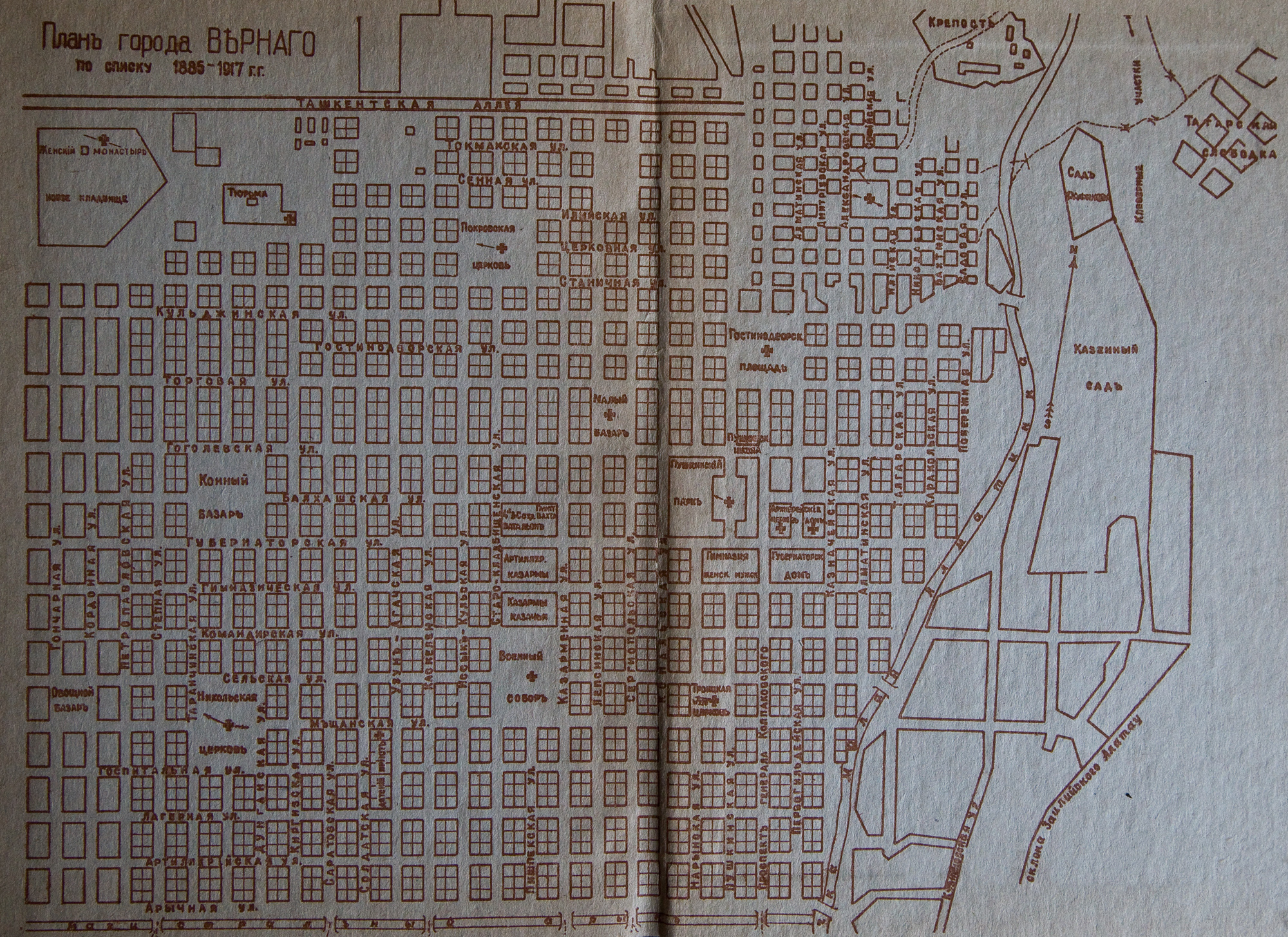 Plan of the city of Verny (Almaty) according to the list of 1885 - 1917