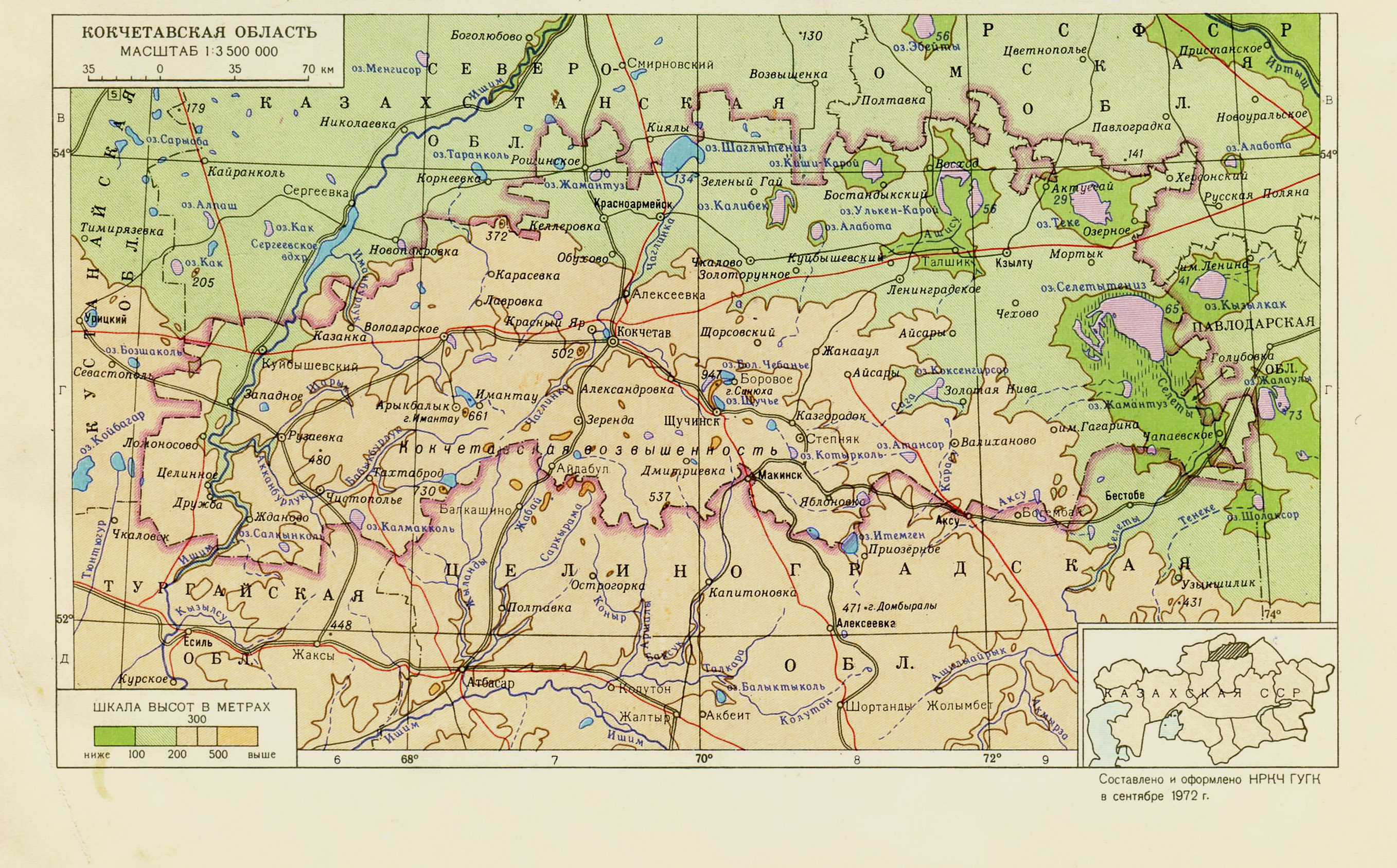 Map of Kokchetav region. Great Soviet Encyclopedia.