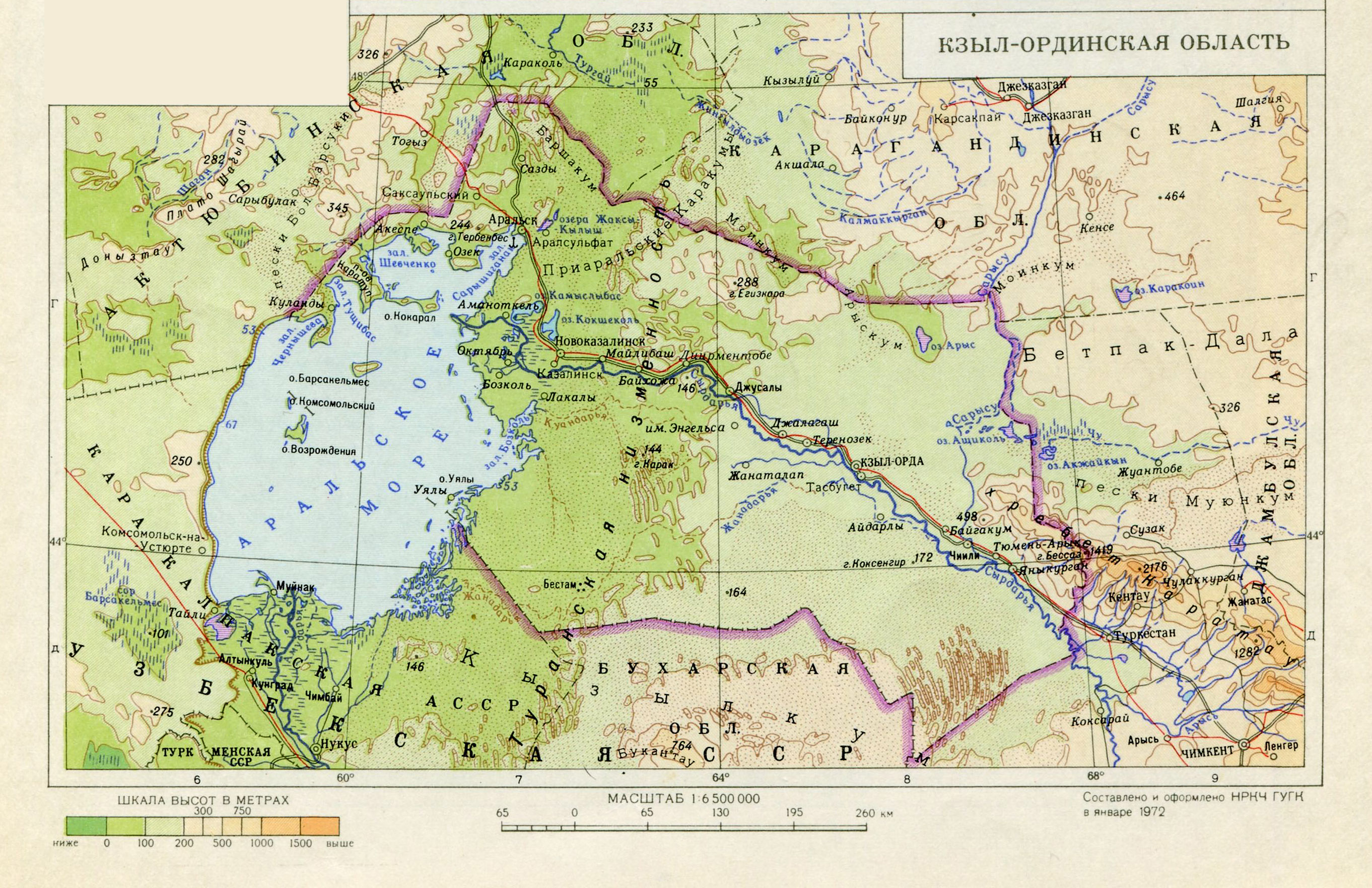 Map of Kyzyl-Orda region. Great Soviet Encyclopedia.