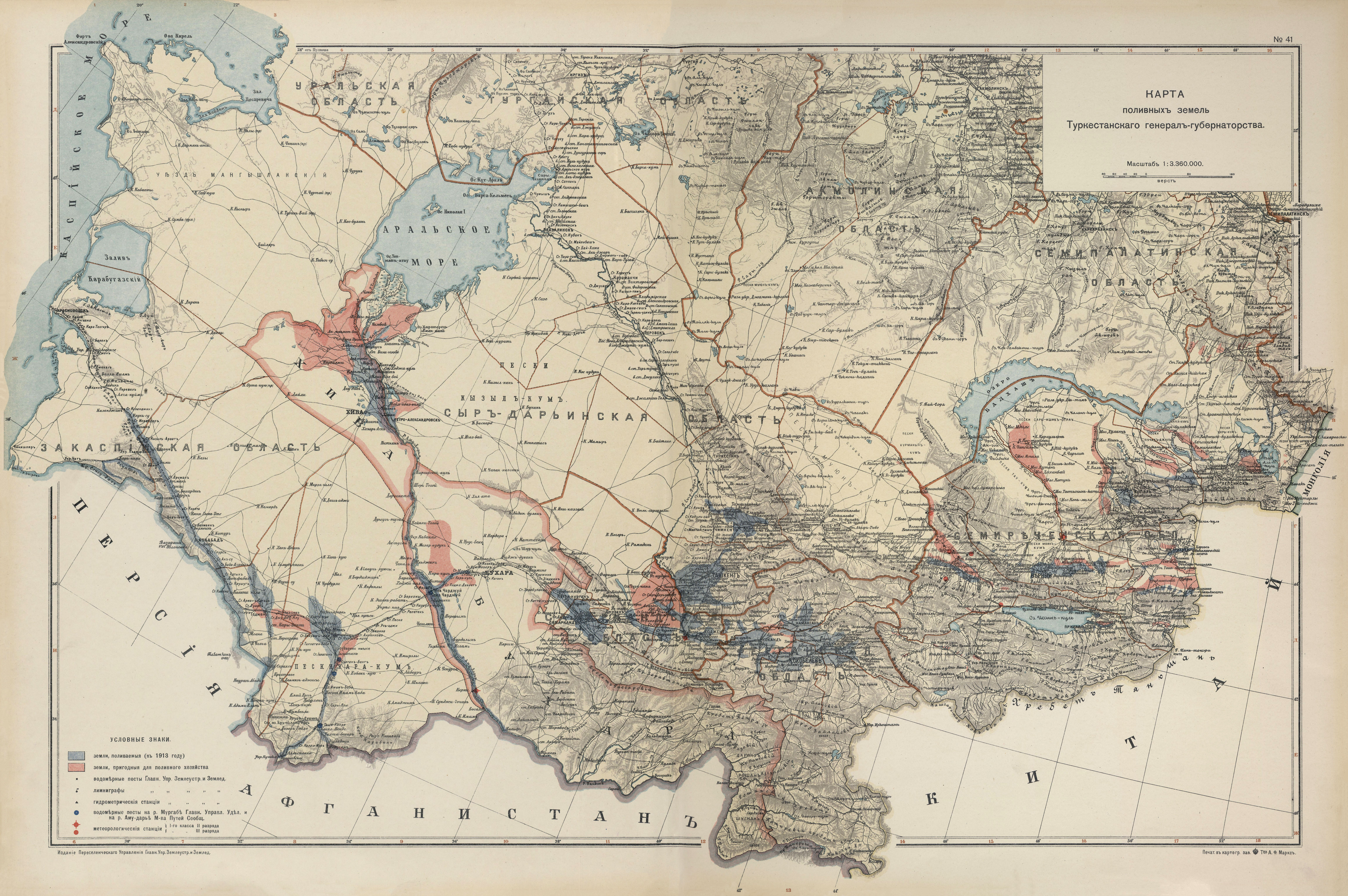 Map of irrigated lands of Turkestan. Atlas of Asian Russia, 1914.