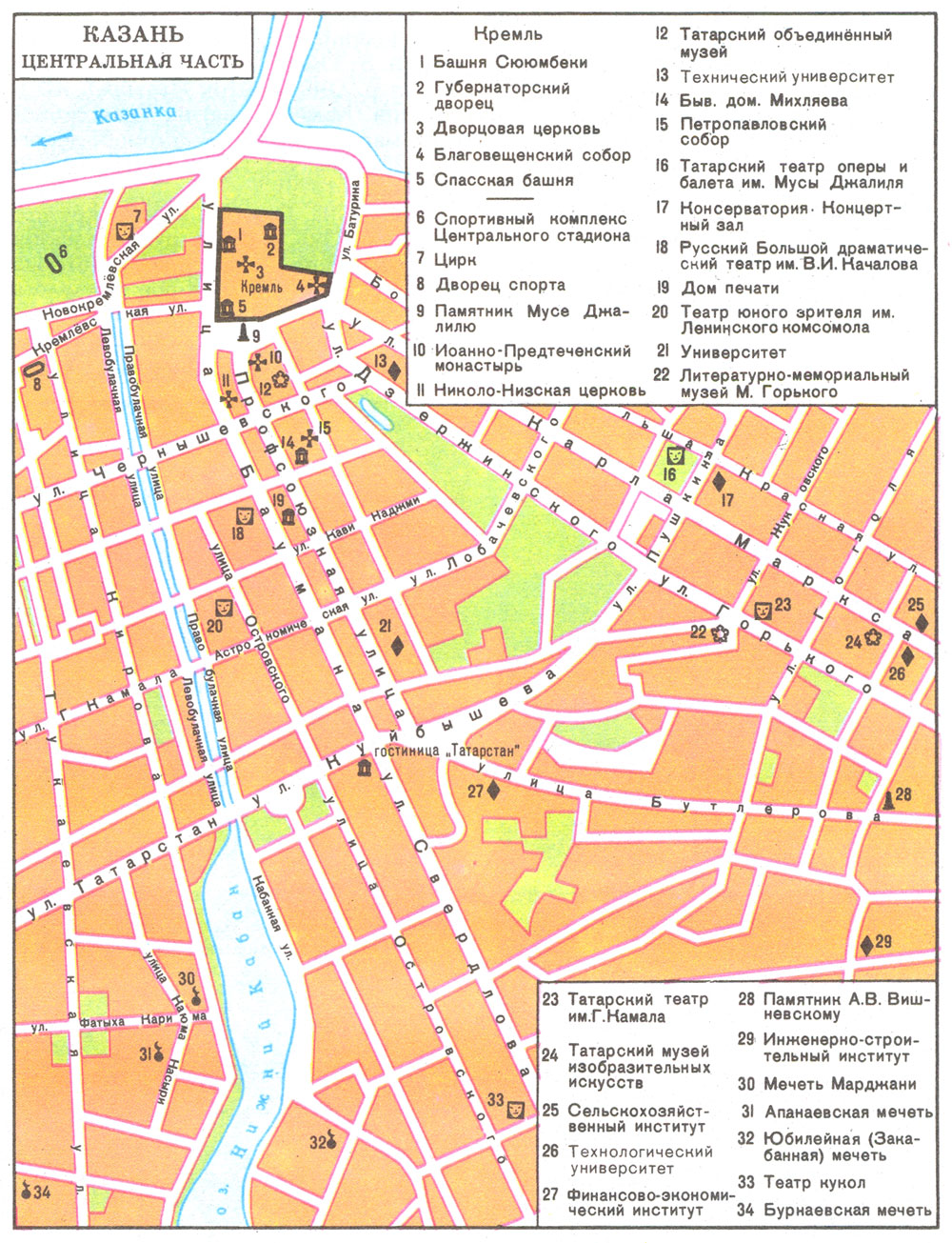 Tourist scheme of the central part of Kazan, 1994