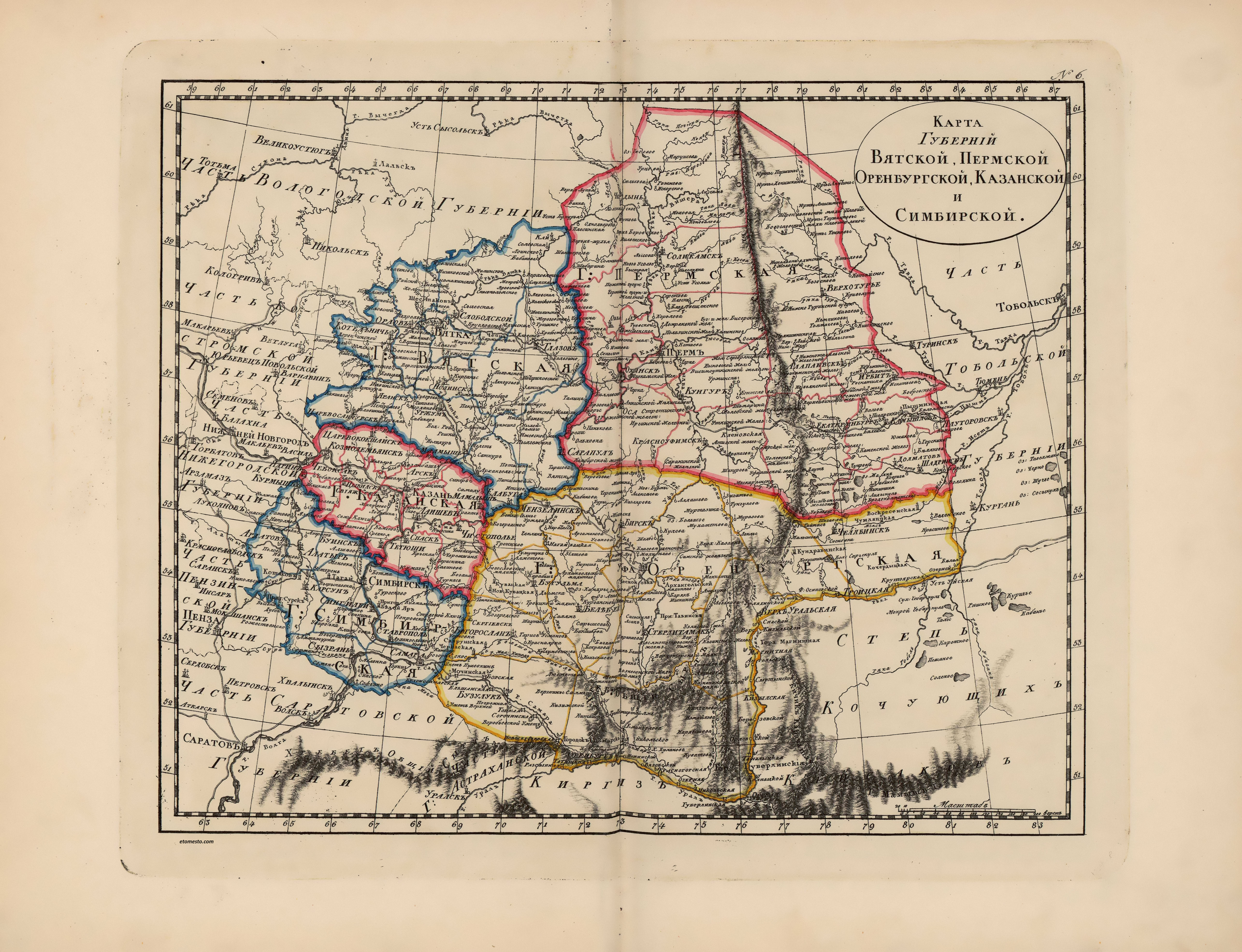 Map of the middle Volga region from the Russian Empire atlas for gymnasiums