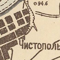 Map of the lower reaches of the Kama River before flooding by the Kuibyshev Reservoir
