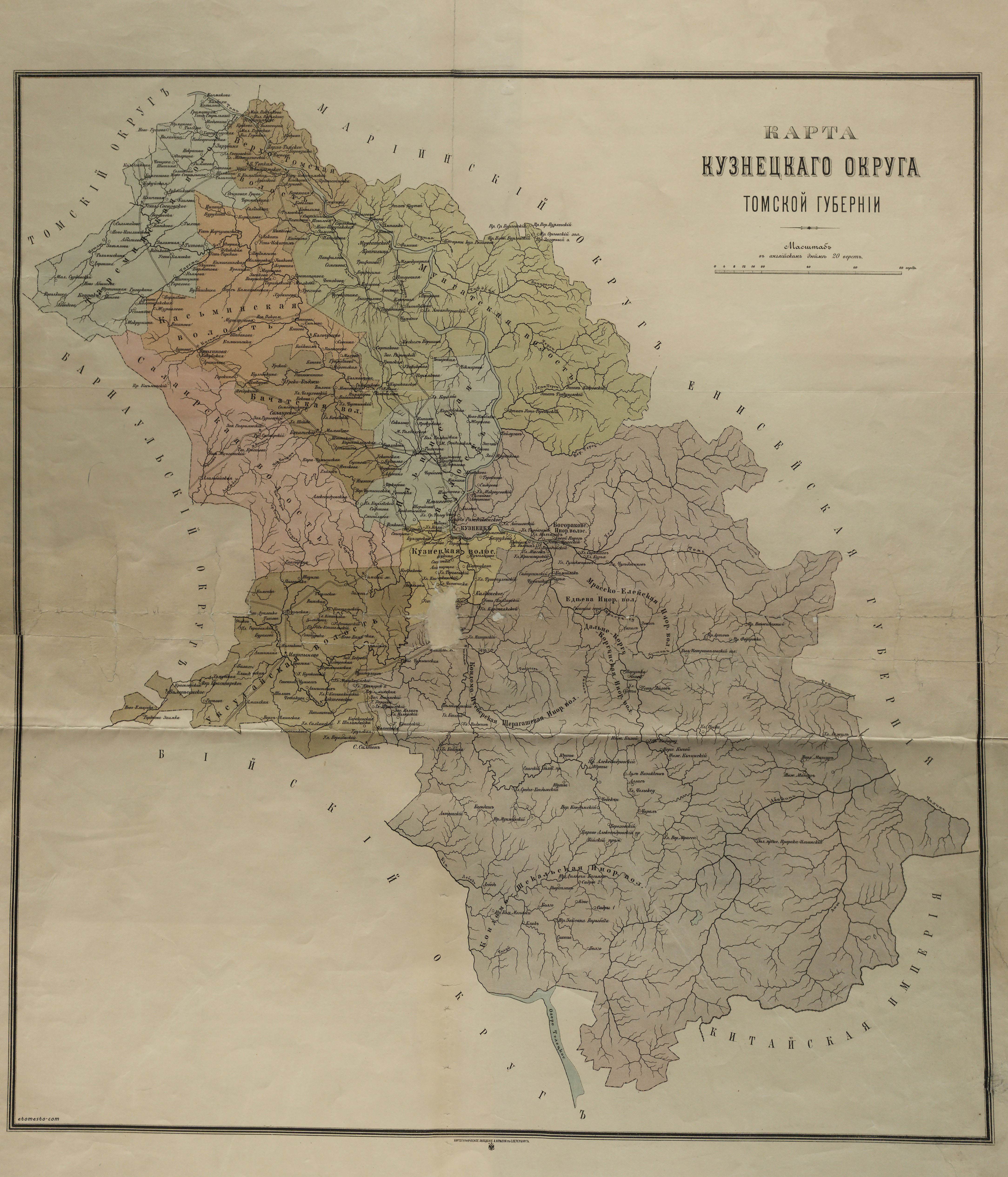 Map of the Kuzneck area of the Tomsk province, 1890