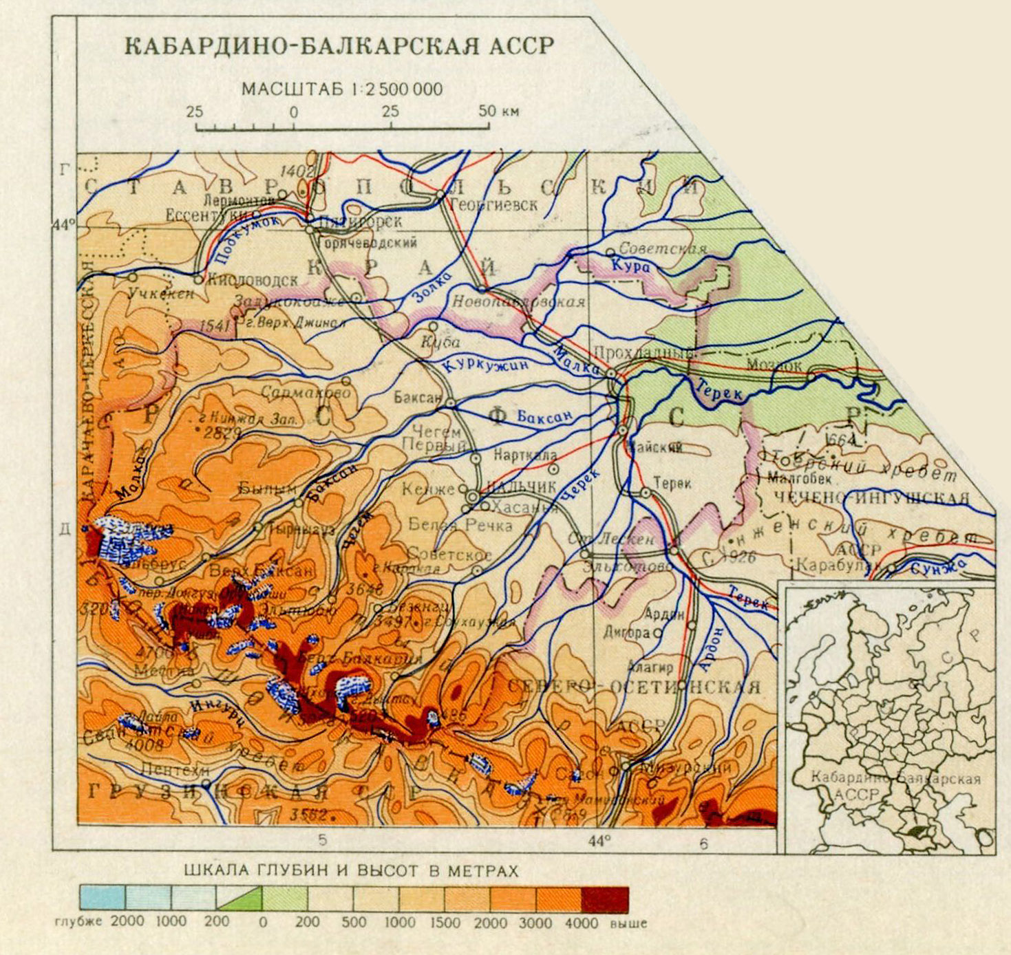 Map of the Kabardino-Balkarian ASSR. Great Soviet Encyclopedia.