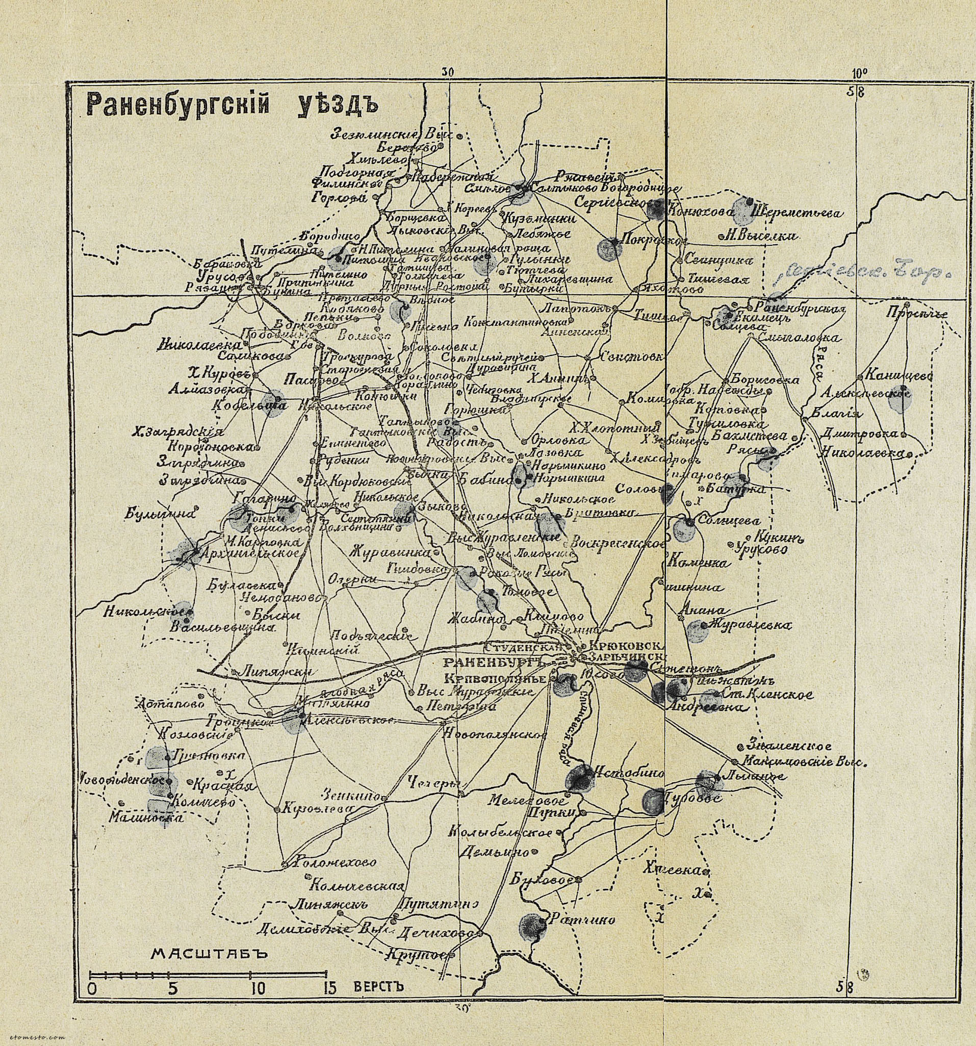 Map of Ranenburg district in 1794 from Tulaev atlas