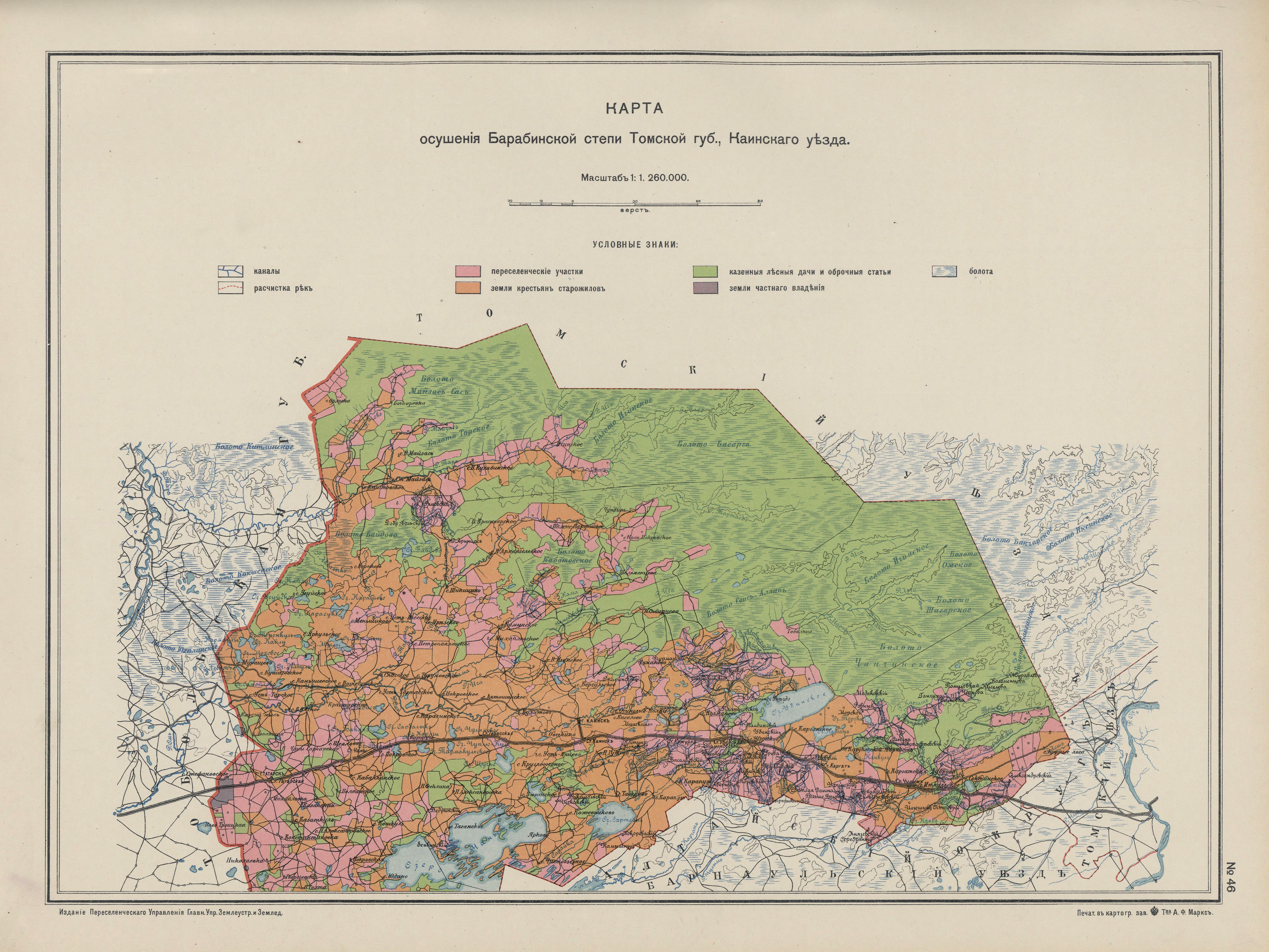 Map of the drainage of the Barabinsk steppe in 1914