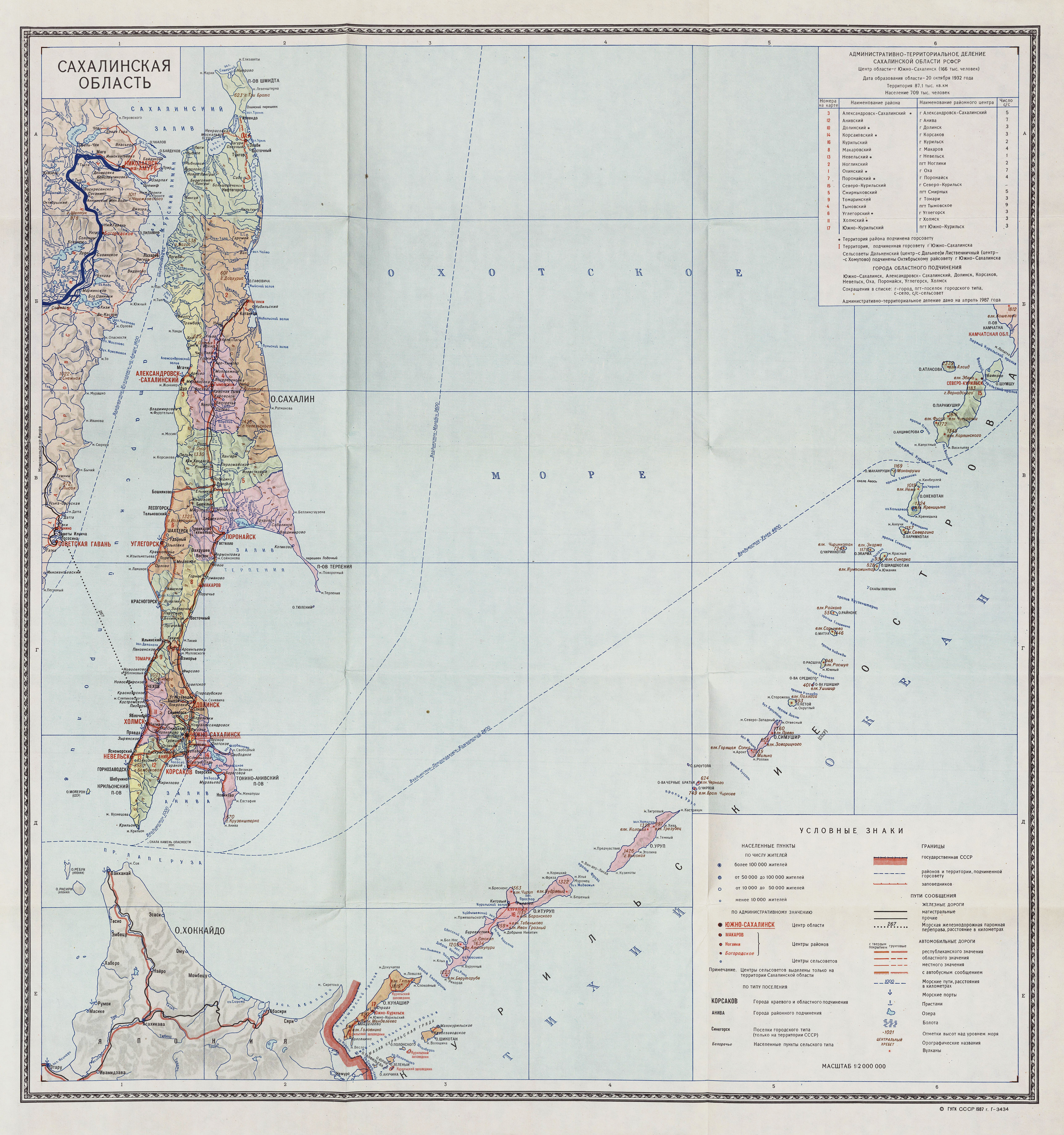 Administrative map of the Sakhalin region 1987