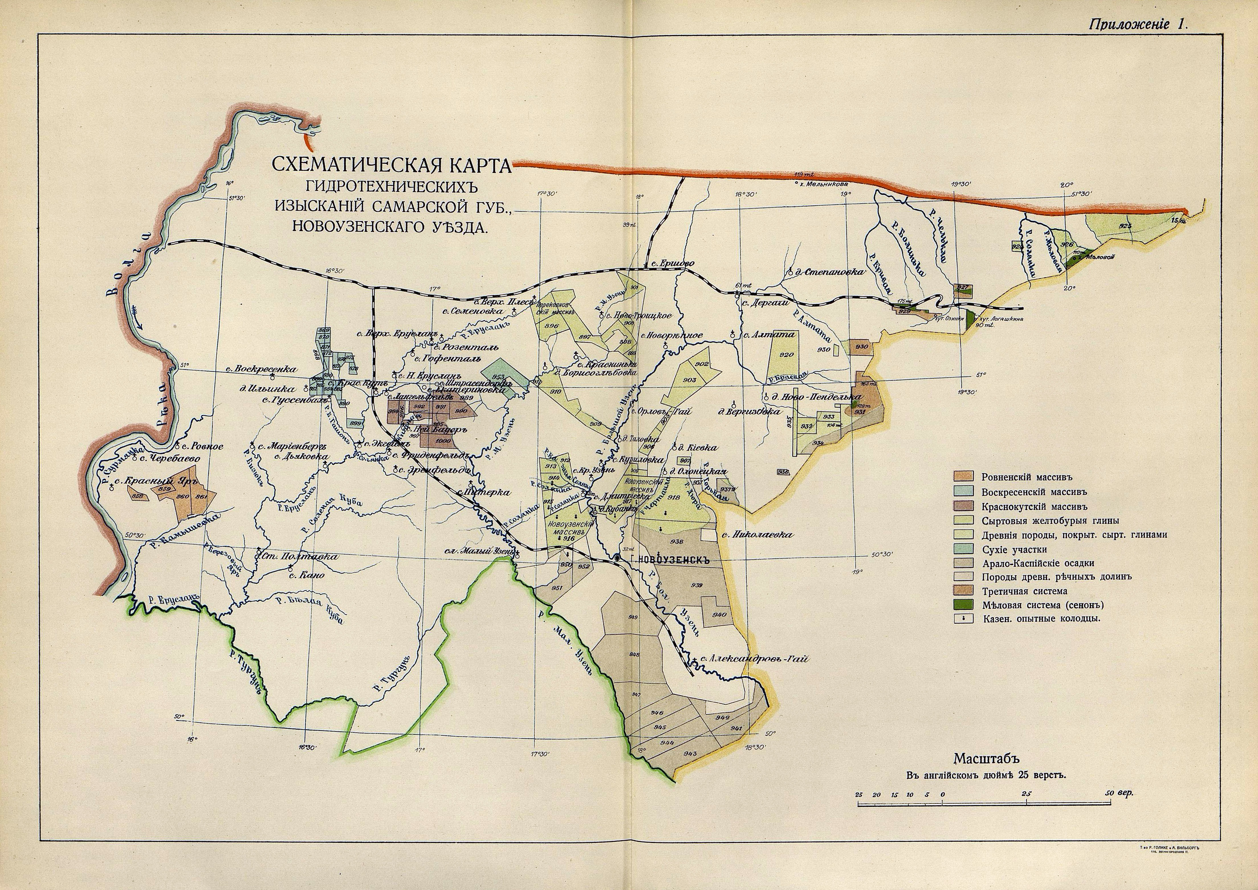Schematic map of Novouzensky district in 1911