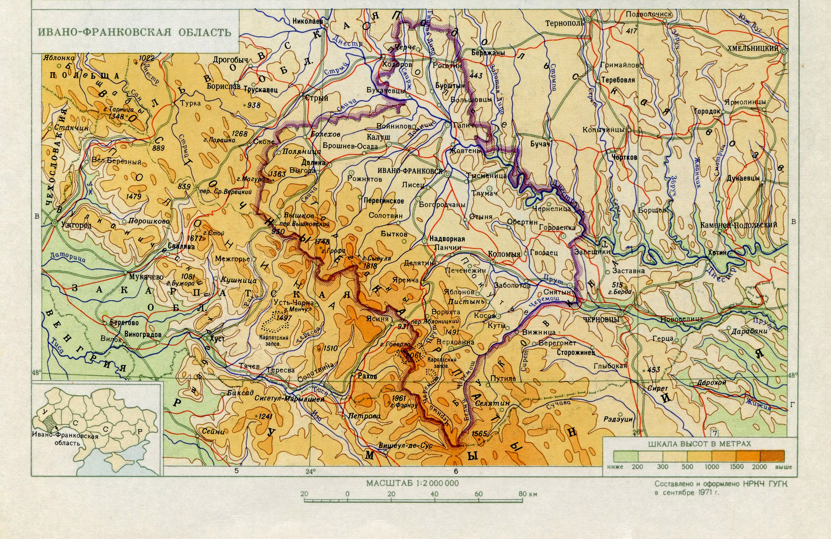 Map of Ivano-Frankivsk region. Great Soviet Encyclopedia.