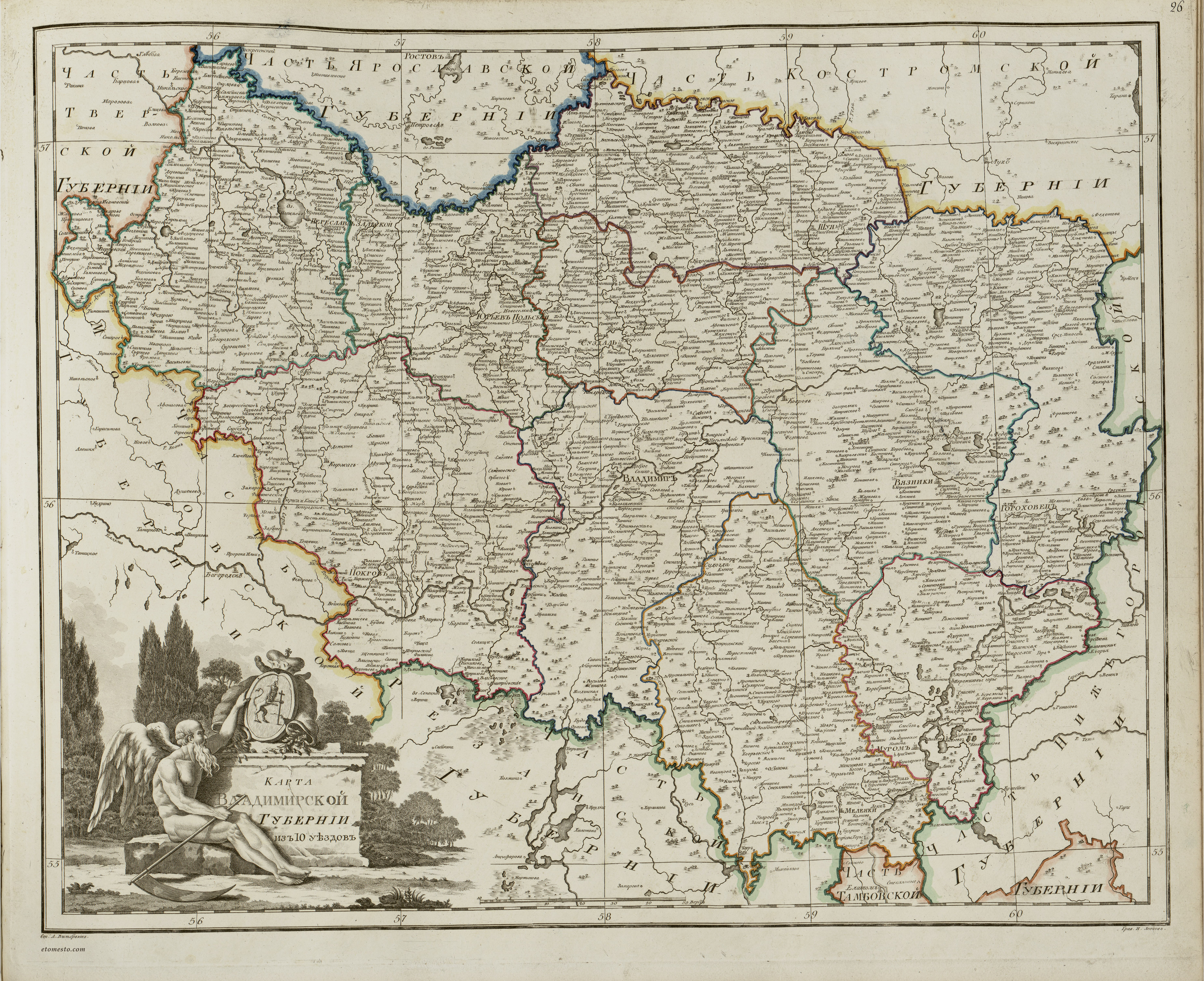 Vladimir province from the Wilbrecht atlas, 1800