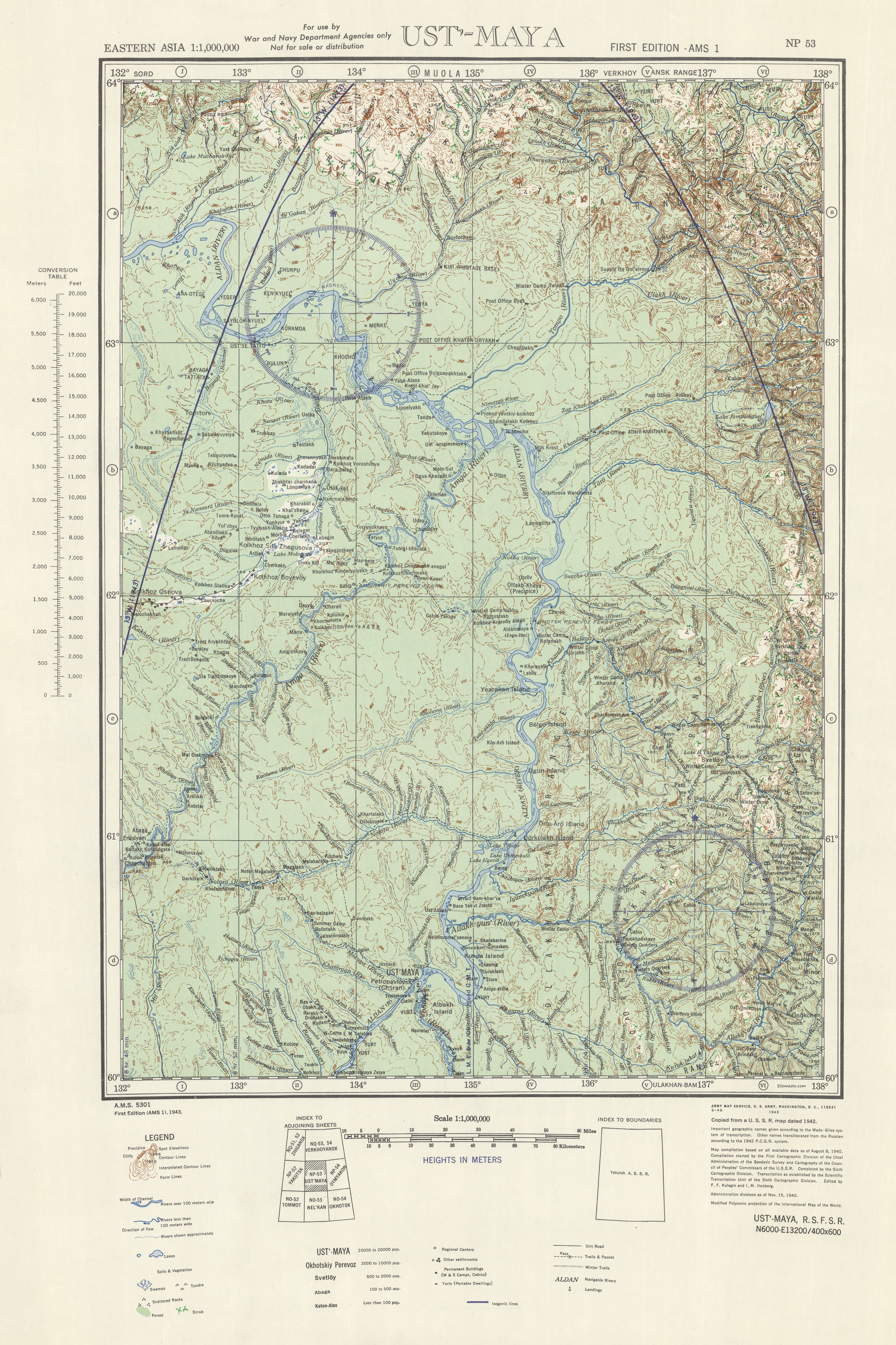 American map of the environs of Vilyuysk and Olyokminsk, 1943
