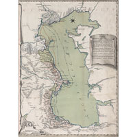 Map of the Caspian Sea in 1779 with routes of previous expeditions